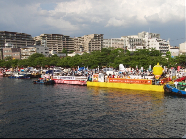大川での船渡御の上流側出発点が、本部道場のすぐそばになっているので毎年楽しく見物しています。